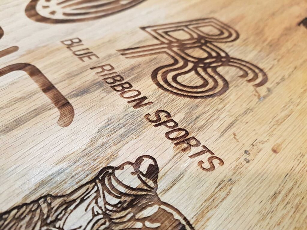 This process works well on Wood, Cast Acrylic and Anodised Aluminium